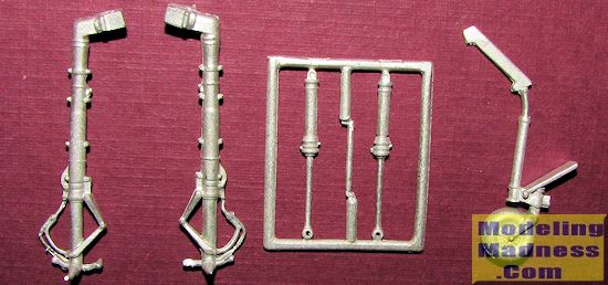 This Scale Aircraft Conversions set is for the Zoukei-Murei 1/48 Ta-152s. I've not seen the kit so cannot comment on it, but the metal set is very nicely done. There are two main landing gear legs, a rather long looking tail gear piece with molded on wheel/tire, as well as three retraction struts.. The molding on this set is very good and these pieces are direct replacements for the kit gear.