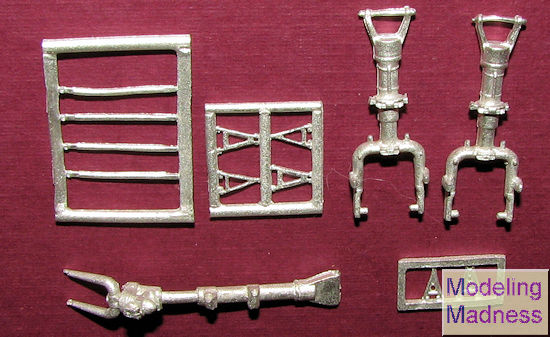 This Scale Aircraft Conversions set is for the new Pilot Replicas 1/48 Saab J.21A-3 that was recently reviewed right here in Modeling Madness. The kit has the smaller bits encased in metal sprues to prevent damage. There are two main landing gear legs with the retraction struts and the separate oleo scissors. A nicely molded nose gear along with its separate oleo scissors is also included. These parts are direct replacements for the kit parts. They are nicely molded and will add some additional strength to a model that needs a lot of nose weight to keep from tail sitting.