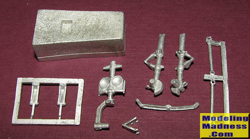 This Scale Aircraft Conversions set is for the recent GWH (Great Wall Hobby) 1/48 T-33 Shooting star. The set contains the two main gear legs with the accompanying struts, a nose gear that incoroprates the landing lights and the retraction strut and oleo scissor. A very nice addition is the plastic nose weight reproduced in metal. This is sure to keep your T-33 on its nose gear!These are nicely molded and are direct replacements for the kit parts.