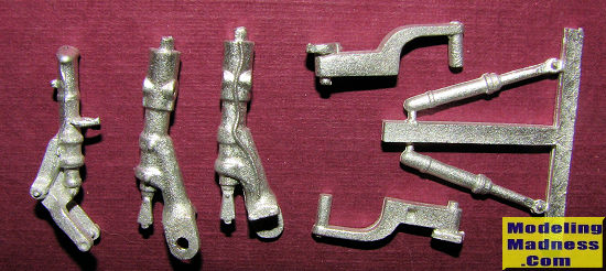 This Scale Aircraft Conversions set is one that fit a number of similar kits produced by Hobby Boss. The 1/48 Hawk is a neat kit and one for which I have several boxings. This set includes the main gear in two parts with a separate lower section. There are retraction struts for the main gear and a nicely one piece nose gear. Easy enough to slightly bend the fork and insert the nose wheel, squeezing the fork back. These are direct replacements for the kit parts and are nicely molded.