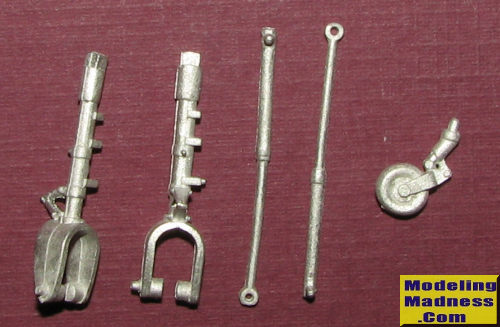 This Scale Aircraft Conversions set is for the Hasegawa 1/48 Macchi C.202 Folgore. This is a pretty basic set, consisting of a pair of main landing gear legs with their long retraction struts. A one-piece tail wheel/gear piece is also included. It may well be that this set will also fit their M.C. 205 kit as in real life the two aircraft were pretty much the same save for the engine. These are direct replacements for the kit parts and are nicely molded.