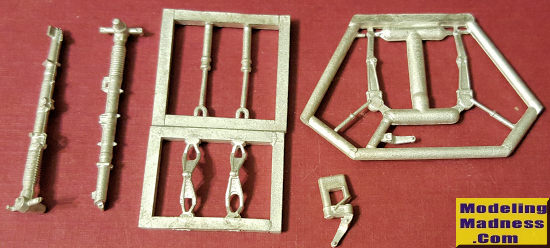 This Scale Aircraft Conversions set is for the new Eduard FW-190 kit. Note that it is 2017 tooling of this kit and not the older one. The set includes the two main landing gear legs with separate oleo scissors. There are two sets of retraction struts that need to be attached as well. The tail gear is included with the second part of the fork on the large retraction strut sprue. These are direct replacements for the kit parts and are nicely molded.