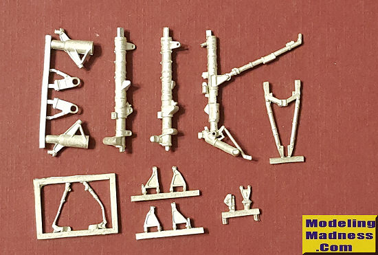 This Scale Aircraft Conversions set is for the GWH (Great Wall Hobby) 1/48 Su-27S Flanker. The set is a bit complex as the Flanker's gear is like that. There are the two main gear struts plus their attachment points. Separate oleo scissors are provided as are the smaller struts. Nose gear has its own retinue of smaller parts. These are direct replacements for the kit parts and are nicely molded.
