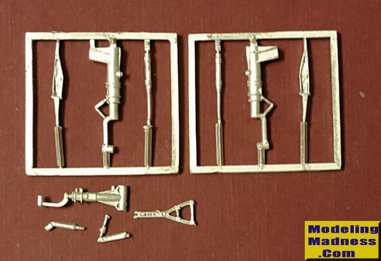 This Scale Aircraft Conversions set for the AFV Club IDF F-CK-1C/D in 1/48 scale. For those who are scratching their heads, this is an Indigenous Fighter (IDF) for the ROCAF built by AIDC. This aircraft was built after China pressured the US not to sell Taiwan the F-20 or F-16s. The set includes the main gear bits in a metal sprue along with the four parts that comprise the nose gear assembly. These are direct replacements for the kit parts and are nicely molded.