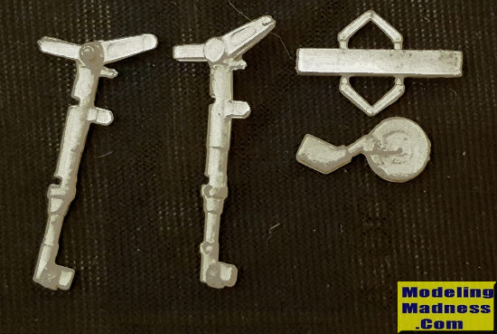 This Scale Aircraft Conversions set for the new Airfix 1/48 Spitfire XIV. Typical of Spitfires, the set is sinmple and consists of the main gear and oleo scissors along with a one-piece tail strut/wheel. As you can see, these are direct replacements for the kit parts and are nicely molded.