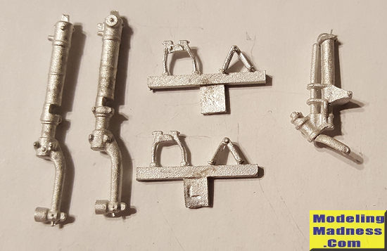 This Scale Aircraft Conversions set for the recent Eduard 1/48 P-51D Mustang. Until the current release of the Tamiya P-38, this was the 'hot item' among those who had to have the latest and greatest. SAC has produced a nicely molded set for this kit that consists of the three struts, main gear oleo scissors and the gear door braces. These are direct replacements for the kit parts.