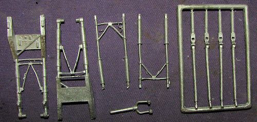 This Scale Aircraft Conversions set is for the new Airfix 1/72 Lancaster kit. This kit has been eagerly awaited despite their being rather new Lancaster kits from both Revell and Hasegawa, but since Airfix builds for the home market, it is not surprising to see this one out. The set is somewhat complex, with their being two large main gear strut assemblies, the retraction strut assembly and two actual retraction pistons for each set of gear. These latter bits are within a metal sprue to keep them straight during shipment. A tail gear leg is also provided. This is a direct replacement for the kit parts. As sometimes happens, some of the thinner bits can be bent, but these are easy to straighten back out.