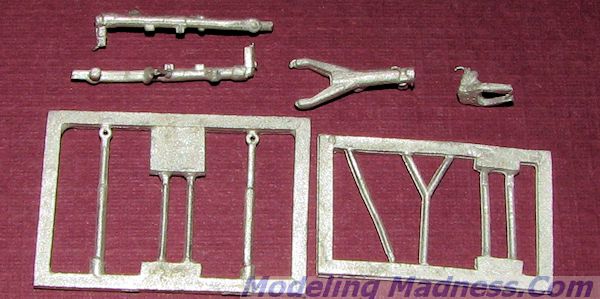 This Scale Aircraft Conversions set is for the line of Mirage III and Mirage V kits that have been produced by PJ Producitons in 1/72 scale over the years. The set consists of the two main gear legs along with their various retraction struts. A two-part nose gear leg is also provided along with its retraction bits. These thinner parts are encased in metal sprue to keep them from being badly bent during shipment. They are direct replacements for the kit bits.