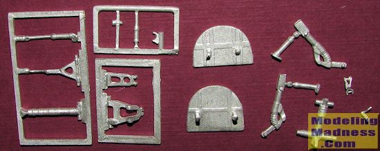 This Scale Aircraft Conversions set is for the Special Hobby or Azur 1/72 Vautour. The set includes the gear attachment points for the nacelles, main, outrigger and nose gear legs along with separate oleo scissors. Engased in metal sprues are the various retraction struts for the four gear legs. These are nicely molded and are direct replacements for the kit bits. I like metal gear as they allow you to correct any possible gear misalignment issues.