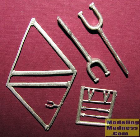 This Scale Aircraft Conversions set is the first I can recall for a Valom kit. This set is for the Bristol Bombay and other similar kits. It consists of two very robust main gear legs, a pair of oleo scissors, the large brace struts and two shocks. A tail wheel fork is also included. The gear is a direct replacement for the kit bits and is nicely molded.