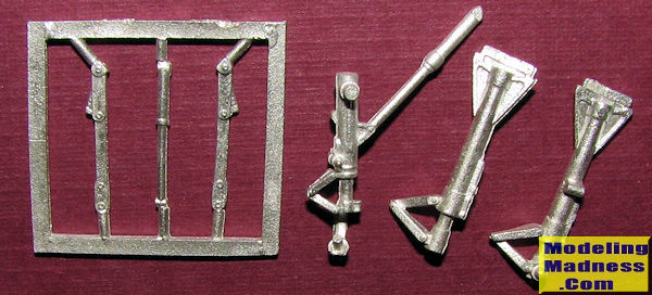 This Scale Aircraft Conversions set is for the nice Hasegawa 1/72 Eurofighter 'Typhoon'. The set consists of the two main landing gear struts, the nose gear strut assembly as well as retraction struts for all three. These latter bits are in a metal sprue to help protect the parts. These are direct replacements for the kit parts and are nicely molded. Don't worry about what looks like roughness on the surface of the parts. This is typical of all cast metal bits and will disappear once painted.