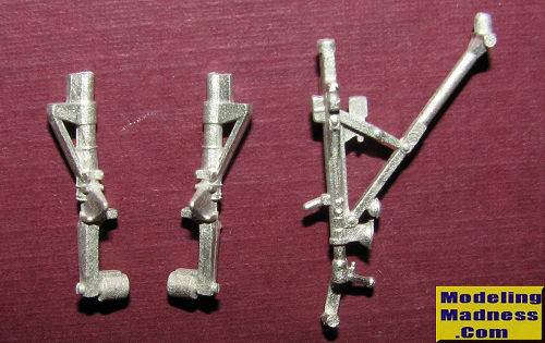 This Scale Aircraft Conversions set is for the new Academy 1/72 Strike Eagle. Apparently they have done a new tooling this year so you can relegate their earlier kit to being built as an F-15B, which is actually is. This set includes new nose and main gear legs with the usual struts already molded in place. These are direct replacements for the kit parts and are nicely molded.