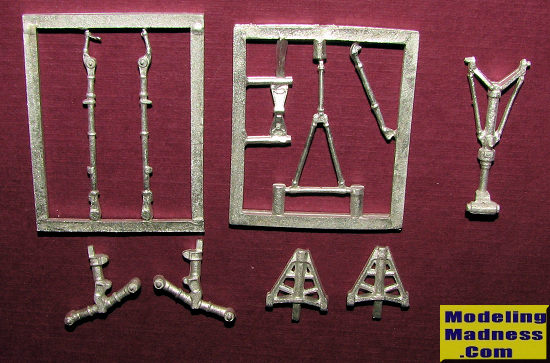 This Scale Aircraft Conversions set is for the AModel 1/72 Tu-134. The aircraft was named 'Crusty' using the code name that the US has given to Soviet/Russian aircraft. I guess it is easier to say over the radio than 'Tu-134' and is quite distinct. This metal set is fairly complex as both the main and nose gear have a lot of additional bits and pieces that go along with them. These are direct replacements for the kit parts and are nicely molded.