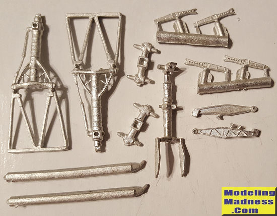 This Scale Aircraft Conversions set for the old, but nice Italeri 1/72 B-58 Hustler. It is nice to see SAC producing bits for these older kits. The set comes with all the pieces for the Hustler's complex landing gear including the main struts and all the ancillary parts. These are direct replacements for the kit parts. Like all SAC sets, they are nicely molded.