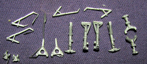 The gear is quite well cast and all one needs to do is clean up the mold seams, paint things and install them in place as they are direct replacements for the kit parts. It is not uncommon for cast metal bits to be a bit bent but some careful straightening out will bring them into line once again.