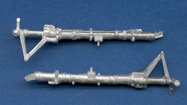 This set is for the Hasegawa 1/32 FW-190 series of kits which includes both the A and D models. As with all Scale Aircraft Conversion sets, this one is made out of sturdy cast metal. I've heard a number of tales of kit gear snapping off, something that should not happen with these. As you can see, the oleo scissors are molded in place. on this one. Improvements to the kit parts include a shortened piston ram so the plane has proper sit, addition of brake lines, and correct gear door attachment points As with the others in this series, these are direct replacements for the kit parts. Only a small amount of cleanup and painting is required. I know I'll find these quite useful and I know you will as well.
