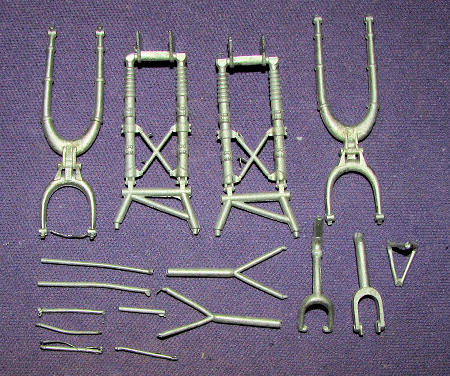 For the new and quite large Trumpeter 1/32 kit, this Scale Aircraft Conversions landing gear set includes main gear legs along with the rather complex retraction struts that are typical of this aircraft. In addition, there are two different tail wheel strut assemblies as apparently that design changed as the aircraft design matured.