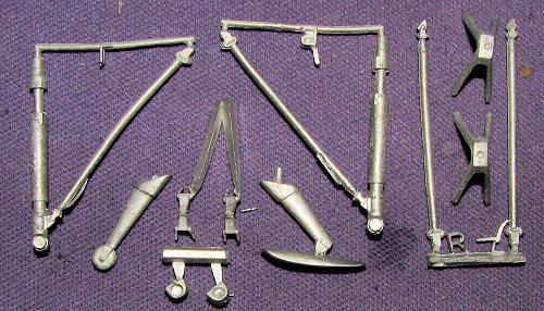 The gear is quite well cast and all one needs to do is clean up the mold seams, paint things and install them in place as they are direct replacements for the kit parts. It is not uncommon for cast metal bits to be a bit bent but some careful straightening out will bring them into line once again.