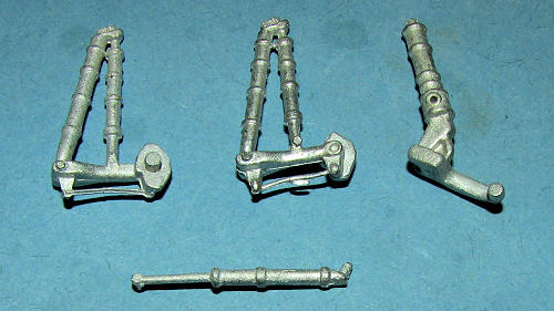 The gear is quite sturdy and all one needs to do is clean up the mold seams, paint things and install them. As you can see from the image, the casting is first rate. Don't sweat getting thinner bits that might get a bit bent in shipping. By slowly working them back into position, they are as good as new. It is one of the realities of cast white metal that we all come across.
