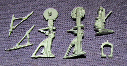 The gear is quite well cast and all one needs to do is clean up the mold seams, paint things and install them in place as they are direct replacements for the kit parts. It is not uncommon for cast metal bits to be a bit bent but some careful straightening out will bring them into line once again.