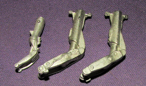 The gear is quite well cast and all one needs to do is clean up the mold seams, paint things and install them in place as they are direct replacements for the kit parts. It is not uncommon for cast metal bits to be a bit bent but some careful straightening out will bring them into line once again.