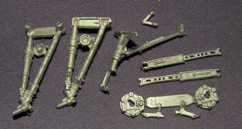 The gear is quite well cast and all one needs to do is clean up the mold seams, paint things and install them in place as they are direct replacements for the kit parts. It is not uncommon for cast metal bits to be a bit bent but some careful straightening out will bring them into line once again.