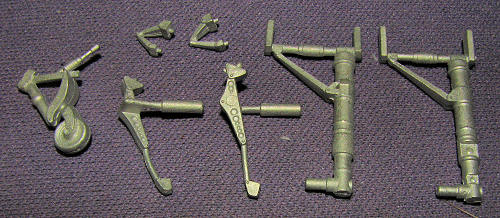 The gear is quite well cast and all one needs to do is clean up the mold seams, paint things and install them in place as they are direct replacements for the kit parts. It is not uncommon for cast metal bits to be a bit bent but some careful straightening out will bring them into line once again.