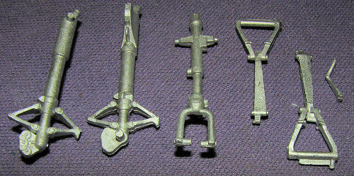 The gear is quite well cast and all one needs to do is clean up the mold seams, paint things and install them in place as they are direct replacements for the kit parts. It is not uncommon for cast metal bits to be a bit bent but some careful straightening out will bring them into line once again.