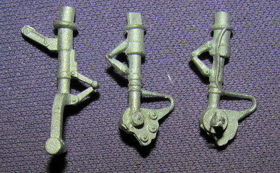The gear is quite well cast and all one needs to do is clean up the mold seams, paint things and install them in place as they are direct replacements for the kit parts. It is not uncommon for cast metal bits to be a bit bent but some careful straightening out will bring them into line once again.