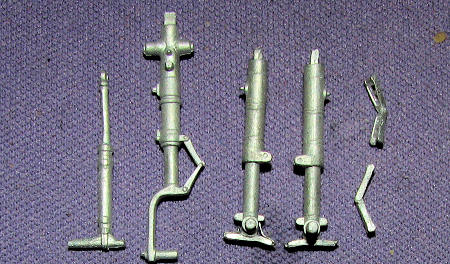The gear is quite well cast and all one needs to do is clean up the mold seams, paint things and install them in place as they are direct replacements for the kit parts. It is not uncommon for cast metal bits to be a bit bent but some careful straightening out will bring them into line once again.