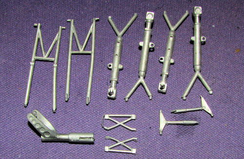 The gear is quite well cast and all one needs to do is clean up the mold seams, paint things and install them in place as they are direct replacements for the kit parts. It is not uncommon for cast metal bits to be a bit bent but some careful straightening out will bring them into line once again.