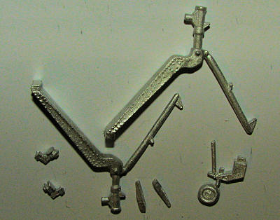 This Scale Aircraft Conversions set is for the rather recent Special Hobby 1/48 F2A Buffalo,This set has a pair of very beefy main gear legs with their attached retraction struts. It also includes a complete tail wheel assembly. As an addition to this set. it includes a pair of barrier guards (the longer items) which are used on the USN versaions. Also included are a pair of uplock roller brackets, something not found in the kits. These bits are replacements and additions to the kit parts.