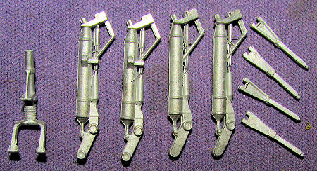 This next new Scale Aircraft Conversions set is for the Revell 1/72 He-177. This aircraft has some pretty hefty gear as you can see. The set includes both right and left side legs for the main landing gear. Also included are the retraction struts for the main gear. A new tail wheel strut is also included. The parts are quite well cast and all one needs to do is clean up the mold seams, paint things and install them in place as they are direct replacements for the kit parts. It is not uncommon for cast metal bits to be a bit bent but some careful straightening out will bring them into line once again.