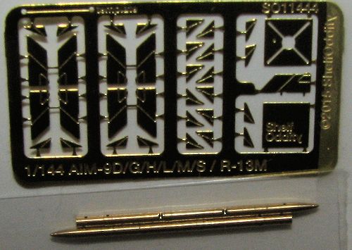 This set is a pair of brass missiles in 1/144 scale. Each missile is a bit under 20mm in length and consists of a solid brass body with etched fins, and some of these are seriously small. I am pleased to see some extras included for the small fins. The two different styles of foreplanes are included to match the variant