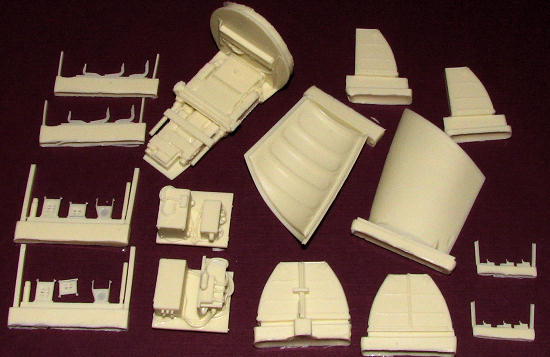 More neat goodies for the Czech Model kit is this full gun bay set. This one is quite complete and includes not only the various electronics one finds in the gun bay, but also a full set of ammo cans, the upper pair of guns and a new set of gun bay doors. The very small pieces you see are the door hinges and even the latches for the doors are included in the set.