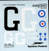 Here is a neat conversion set for the new Wingnut Wings Se.5a. It allows the builder to make McCudden's plane, which was modified from the regular aircraft in the cockpit area and with different exhaust. The set includes this additional cockpit area and two new exhaust sections. In addition, there is an eight piece resin figure of McCudden himself to add to the build when you are done. The set also includes an upgraded decal sheet, providing the markings that are not included with the Wingnut WIngs kit. A set of instructions is part of the set that offers painting information for the figure and a marking placement guide for the new decals. The decals are produced by Aeromaster and are first rate.