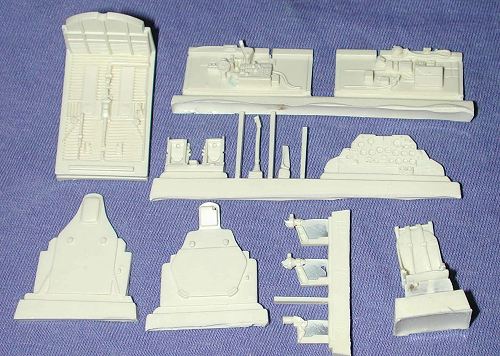 This set covers the later P-47D razorbacks as well as the early bubble-top Thunderbolts. As a result, this set has different sidewalls and the different aft bulkhead/armor plate to accommodate the bubble-top version. In all other respects, it is the same as the earlier set and includes a variety of gun sights as well. The set is designed for the Tamiya kit, but could probably be made to fit other 1/48 Thunderbolts with a bit of work.