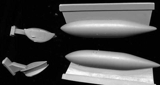 To help out the modeler, the set has the tank mounts molded into the wing tips. One simply cuts off the kit wingtips and installs these resin one. True Details has been kind enough to include tabs to fit into the tips of the wings, making alignment very easy. The tips have been molded along a natural panel line as well. The two tanks are a superb casting and there are no molding flaws whatsoever on any of the parts.