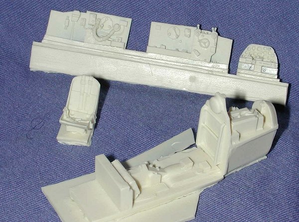 The second 'new' ex-KMC set is this one for the Hasegawa P-38J. As sets go, this one is not as fiddly as most and includes just five parts. A cockpit tub, seat, side walls and instrument panel make up the set. Assembly is very straightforward and it seems that no modification of the kit is required in any way to use this set.