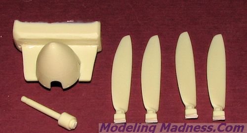 This is the first of a run of parts for the Eduard 1/48 Spitfire from Ultracast. Apparently there are issues with the kit prop so Ultracast has produced a replacement. This set consists of a hollow spinner, four blades and a new prop shaft. As with other Ultracast products, the molding is flawless and the parts are easy to remove with just a hobby knife.
