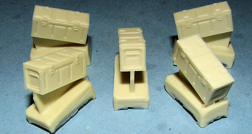 More neat accessories for the armor fan, and especially for those modeling British Empire stuff. This time, Ultracast provides a set of metal munitions boxes. These are the B167 Mk.I versions, which appear to be a different size from the earlier B166 boxes reviewed a few months back. Those who know more than I will have to fill me in on the details. You get five of these in the set and they are ready to paint.