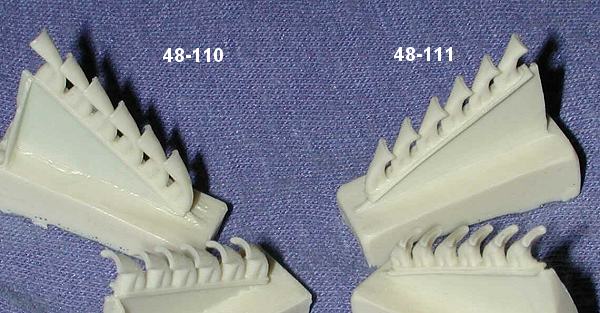 Continuing with the Ultracast P-39/P-400 sets for the Eduard 1/48 P-39/400, here are a couple of sets of the more unusual exhaust. Set 48-110 is listed as flared exhaust while 48-111 are British fishtail exhaust. Trying to carve out either from plastic would be an exercise in futility, but these are not only expertly molded, but by painting the recesses you can easily simulate that they are hollow.