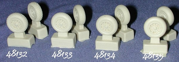 Set 48132 has the more common diamond tread. 48133 has a block tread, while 48134 has a radial tread. More often used on early P-51s is 48135 which has a smooth surface. You'll notice that none of these are bulged much at all and are a lot more prototypical than some of the other wheels one sees. Regardless of which kit you are building, one of these sets will be perfect for it.