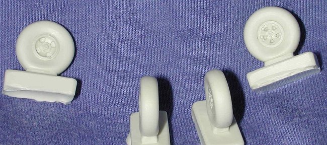 Included in the last parcel were two sets of wheels for the Hawker Hurricane.These come in a four spoke (#48076) and a five spoke (#48075) pattern. Bothare US$4.95/CDN$5.95 for the pair. As with other Ultracast resin parts,they are superbly molded and detailed. They are also flattened to show theweight of the aircraft, but are not grossly bulged as with some otheraftermarket wheels.