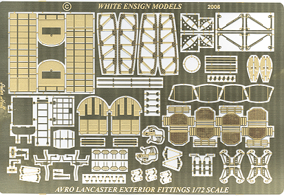 Starting on another group of sets for famous British aircraft, this is the first set for the Lancaster in 1/72 scale. The first set is an exterior detail set. Much of this is for the wheel wells and there are separate bits for the Airfix and Hasegawa kits to make sure that it properly fits the kit you are working on. There are also engine cowling bits, an aft access door group, control linkages, bomb bay door end plates and various nose antenna.