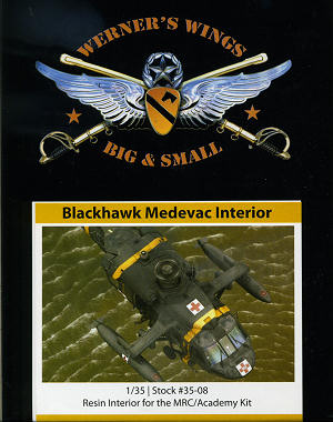 Werner's Wings latest resin conversion set is to provide builders with the ability to take the current MRC/Academy 1/35 Blackhawk helicopter and convert it into a medivac bird. This set includes all the bits you'll need to do the conversion and make your next big Blackhawk a real show-stopper as the medivac interior is quite different from the standard troop hauler.