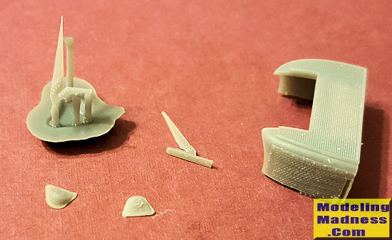 This nice upgrade set from Werner's Wings is for UH-1H Hueys that operated post Vietnam. The set consists of three separate items. One is a set of form fitted wire and cable cutters. Second are a pair of APR-39 warning receiver antennas that fit on the nose. The third is an IPS (fancy air filter) that was laced over the ending intake housing to further prevent stuff from getting into the engine.