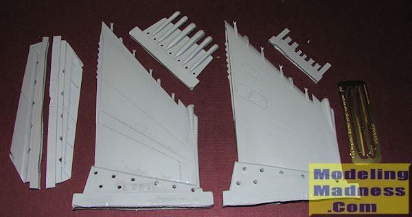 Included in this set is everything you need to complete the conversion. You get two complete outer wing sections, the outer slats and the inner actuator assemblies. You are also provided with a pair of etched brass wing fences in the size and shape appropriate for the Navy Phantom.