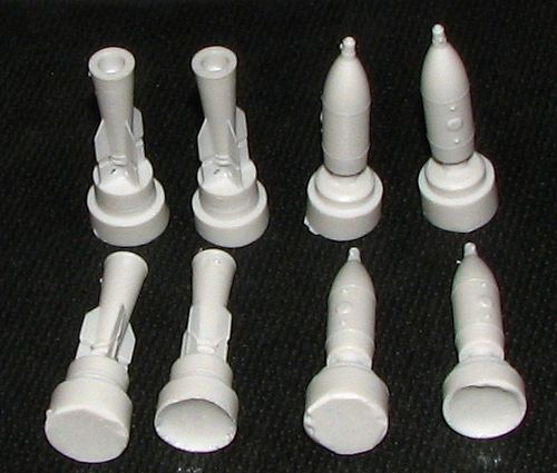 This next item in Wingman Models' "Fix It" series of resin bits are these Matra retarded general purpose bombs. These are the 'Blallute' style of retarded bombs which means they had a small balloon pop out of the back of the bomb to help slow down their drop speed. These bombs were carried by a number of European jets including the Tornado, Alpha Jet, F-4F Phantom II and Jaguar to name a few. I wouldn't doubt that they can also be carried by more modern aircraft like the Rafale and perhaps the Typhoon. There are instructions included that show assembly and painting and while they show two different bombs, I cannot tell the difference. It is great to see these European weapons being made as they are going to be quite useful to modern jet builders. Available direct or from several on-line retailers.