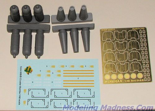 After a bit of a hiatus, Wingman Models has sent another of its 'Fix It' resin sets. This time it is a set of SUU-30B/B bombs. There are six bombs in each pack. The bombs consist of two resin sections each as well as photo etch for the fins and a decal sheet.